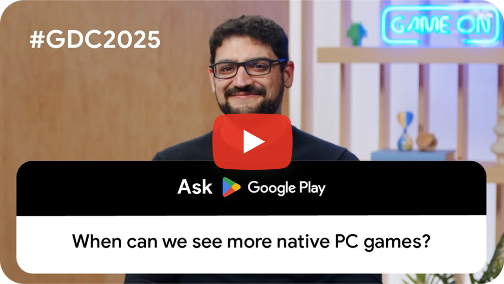 Segui la diretta per scoprire in che modo Google Play Giochi su PC sta aiutando gli sviluppatori a espandere la propria copertura su più dispositivi grazie a importanti upgrade della piattaforma, assistenza ampliata e disponibilità generale entro la fine dell'anno.