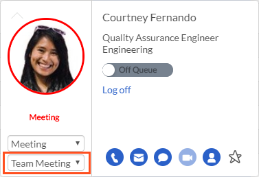 To set the agent's user status, select a status from the status drop-down. If the agent's status is On Queue, selecting a user status also sets them to Off Queue.