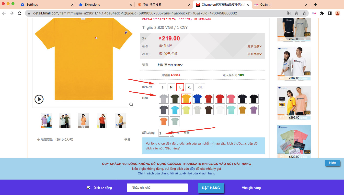 Sở hữu công cụ đặt hàng chuyên nghiệp với chức năng. Bạn được hỗ trợ tìm kiếm nguồn hàng, xem thông tin sản phẩm bằng tiếng Việt. Giá tiền từng sản phẩm bạn xem trên Taobao cũng được hiển thị và quy đổi về tiền Việt giúp bạn theo dõi dễ dàng hơn