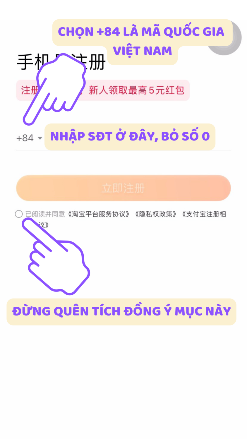 Các bước đăng ký tương tự như khi tạo tài khoản Taobao trên app Taobao: