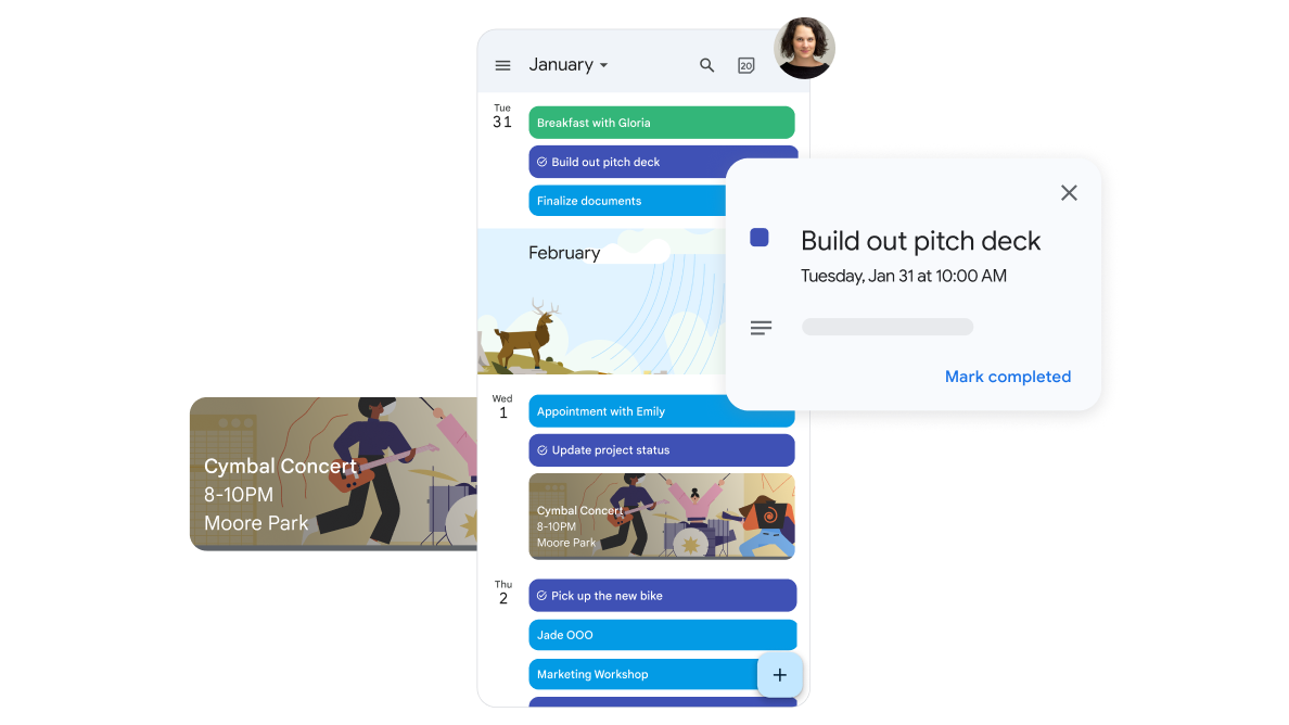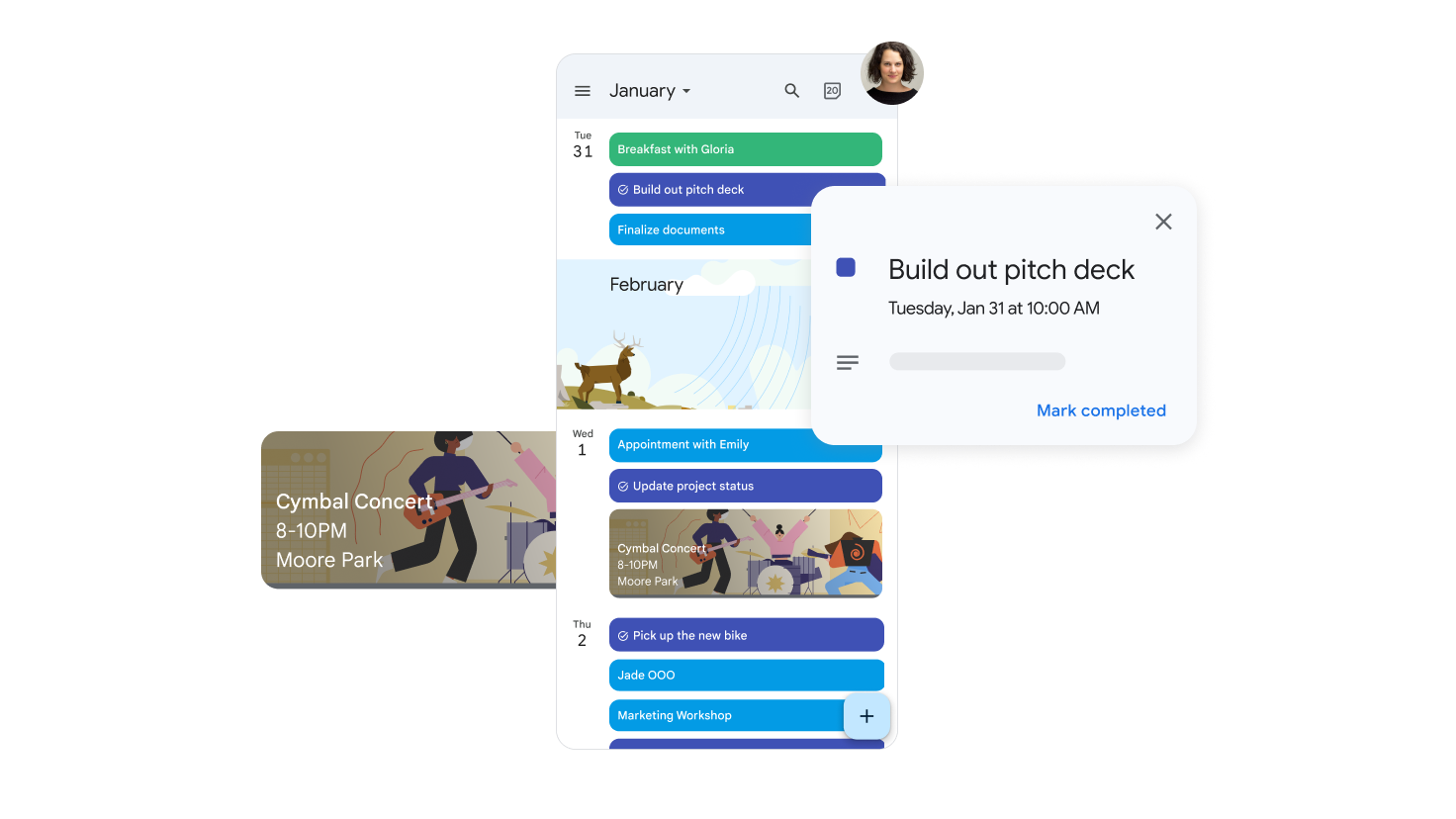Коли вас запрошують на концерт або бронюють вам квитки на літак чи призначають зустріч, Google Календар автоматично додає подію у ваш розклад.