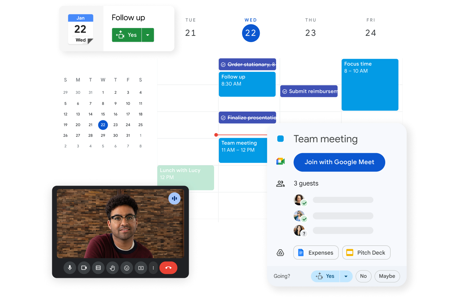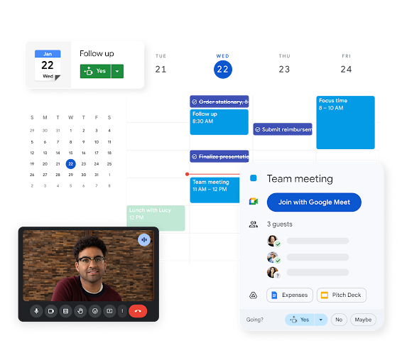 Workspace також дає змогу легко використовувати інші продукти в межах рішення. Наприклад, коли працівники планують зустріч у Календарі, у запрошення автоматично додається посилання Google Meet, за яким учасники можуть до неї приєднатися