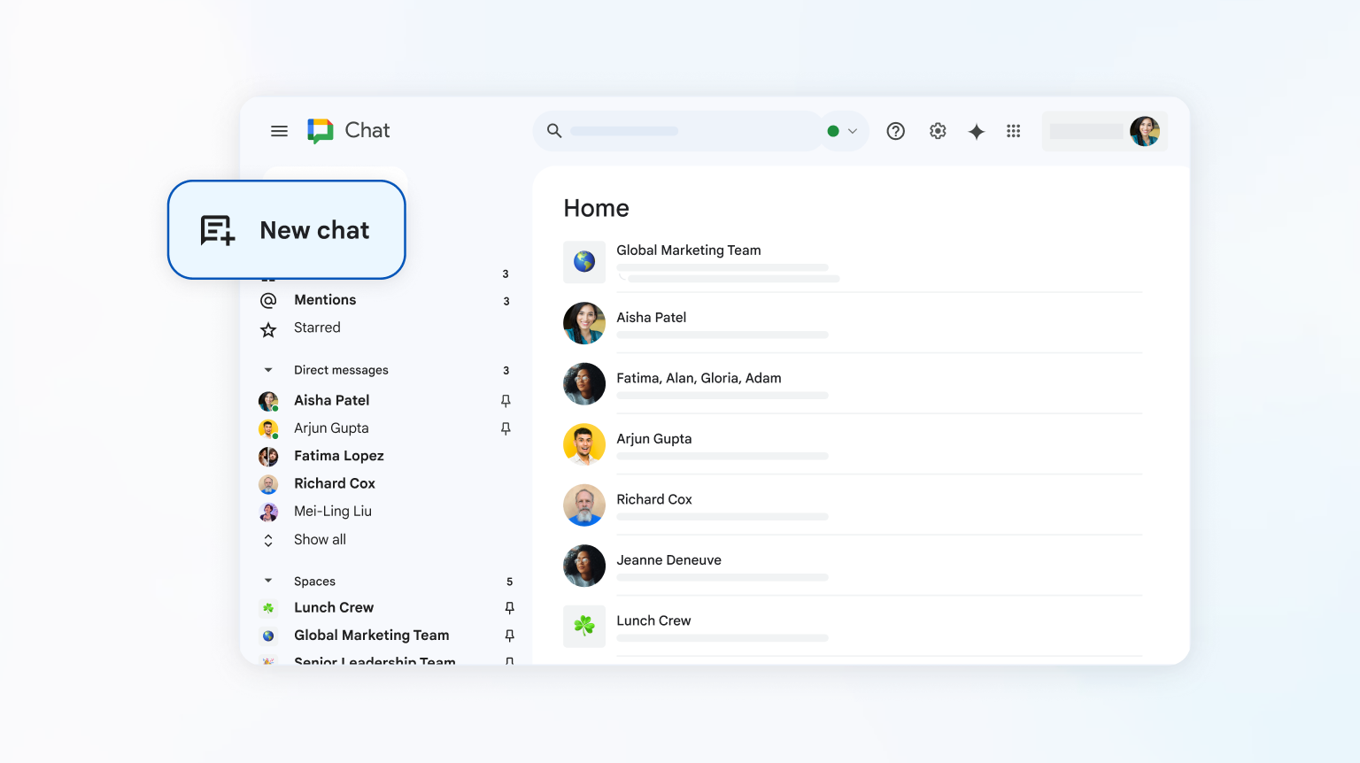 Gemini trong Chat là một cộng sự luôn sẵn sàng đưa ra câu trả lời, tóm tắt các cuộc trò chuyện, tìm tệp trong Drive và suy nghĩ ý tưởng sáng tạo mới.